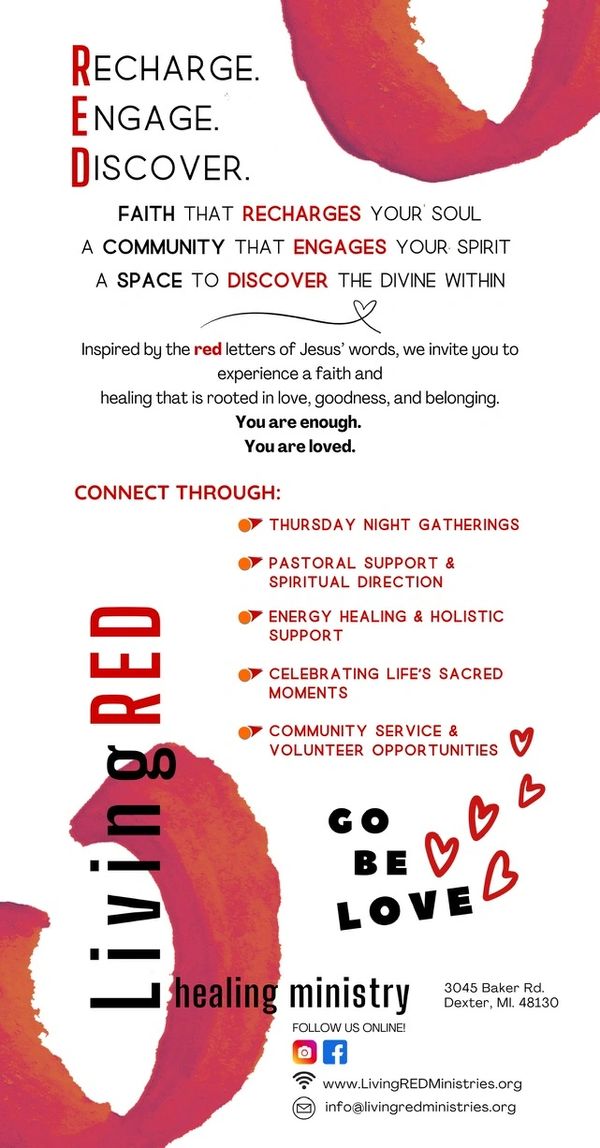 Throughout the pandemic, our team – Pastor Vicky Lovell, Energy Medicine Practitioner Danielle Groth and Spiritual Director Dan McConnell - offered extensive spiritual care while our world was in a collective trauma. What we learned is that many people struggle to love themselves and to see themselves as beloved children of God. The result of this limiting belief is that they choose not to be a part of a church community because they do not feel worthy of the love of Christ. At Living RED, we team with practitioners who walk with people through their traumas and find the love of God on the other side.